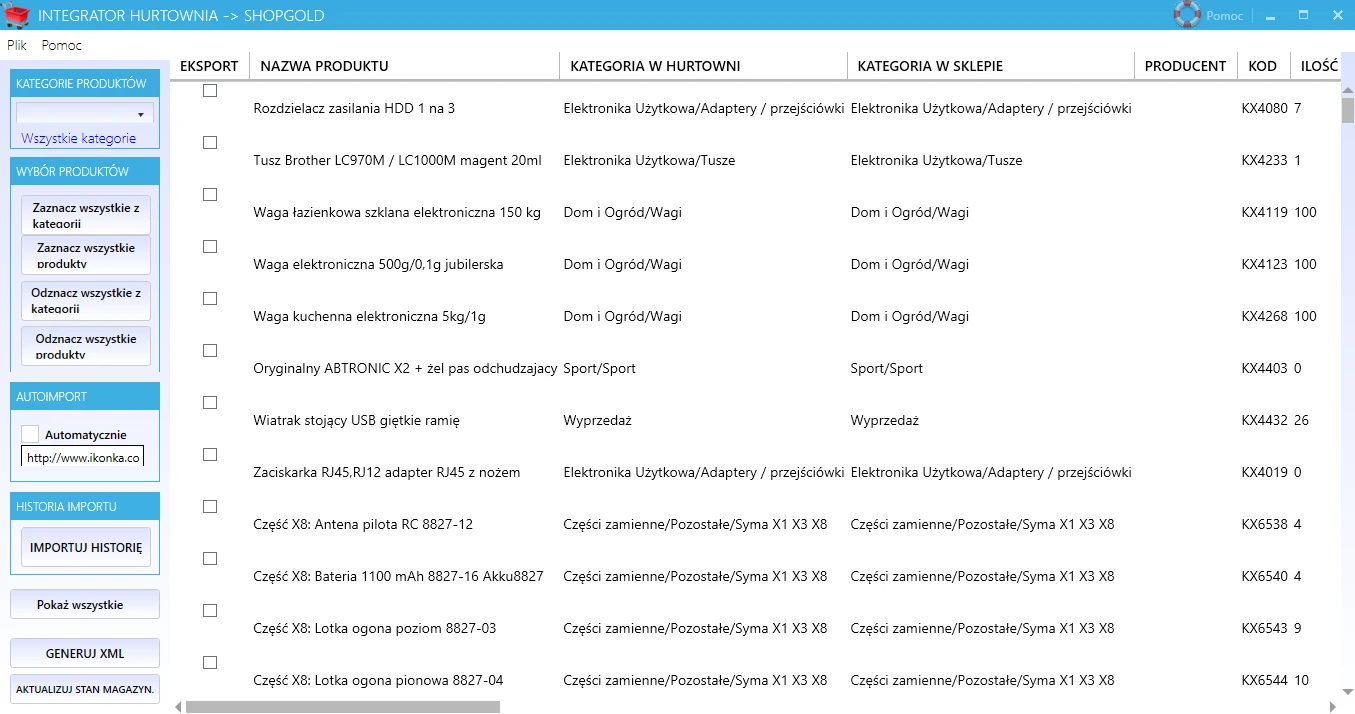 Aplikacja pozwalająca na pobranie pliku XML z produktami hurtowni, wprowadzenie własnych cen sprzedaży, opisów i eksport do pliku XML dla sklepów opartych na platformie shopGold.